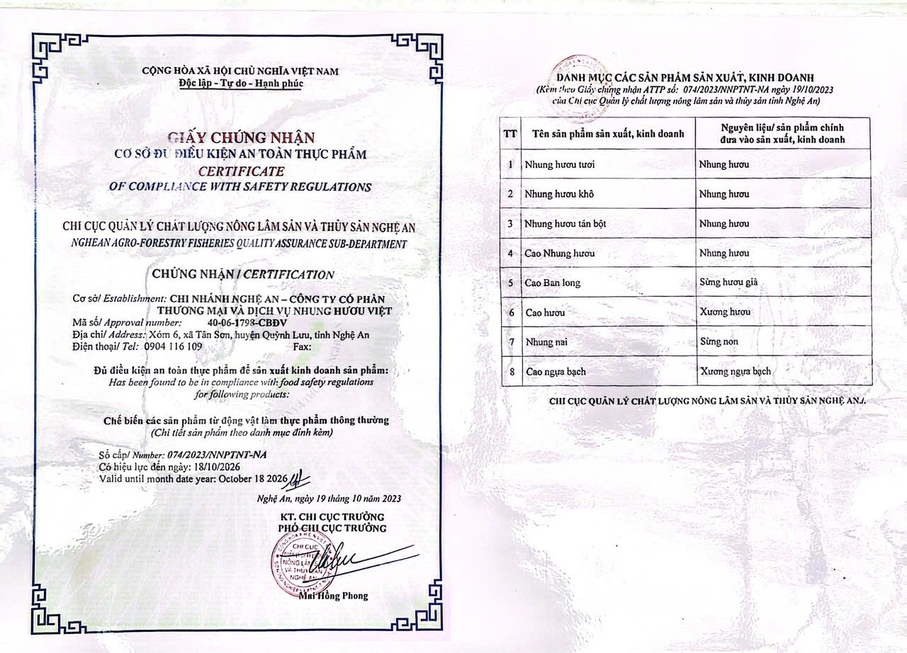 Công ty CPTM&DV Nhung Hươu Việt
